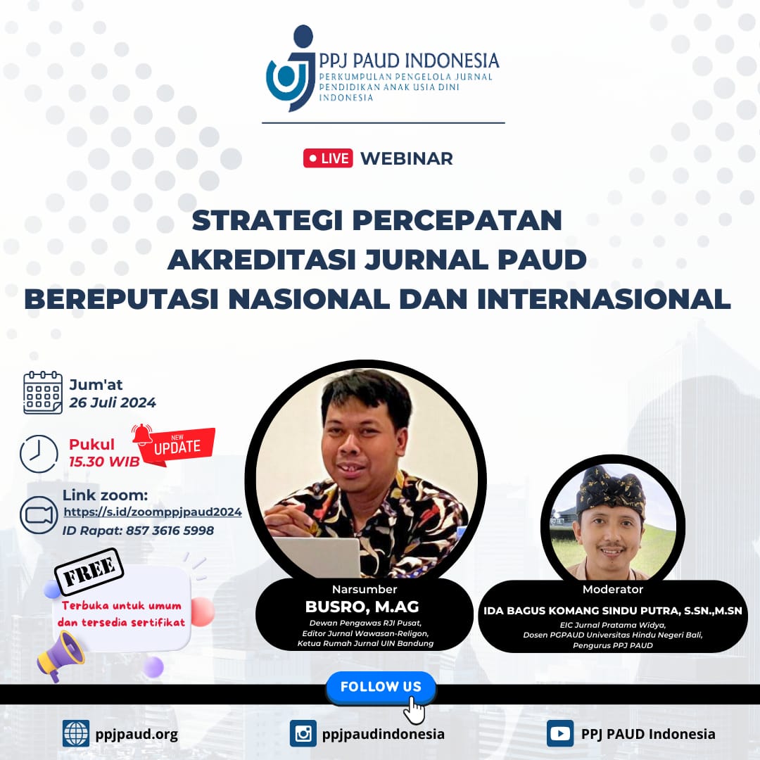 Perkumpulan Pengelola Jurnal (PPJ) PAUD Indonesia kembali melaksanakan Bimbingan Teknis (Bimtek) Penulisan Artikel Ilmiah berbasis Artificial Intelligence, yang berlangsung secara daring dan diikuti oleh puluhan peserta dari berbagai daerah. Kegiatan ini menghadirkan narasumber nasional, Dr. Eric Kunto Aribowo, MA., dari UIN Sunan Kalijaga Yogyakarta, dengan materi yang dikemas secara komprehensif dan aplikatif. Ketua Umum PPJ PAUD Indonesia, Syamsuardi Saodi, dalam sambutannya menyampaikan bahwa penggunaan AI sudah menjadi kebutuhan dalam dunia…